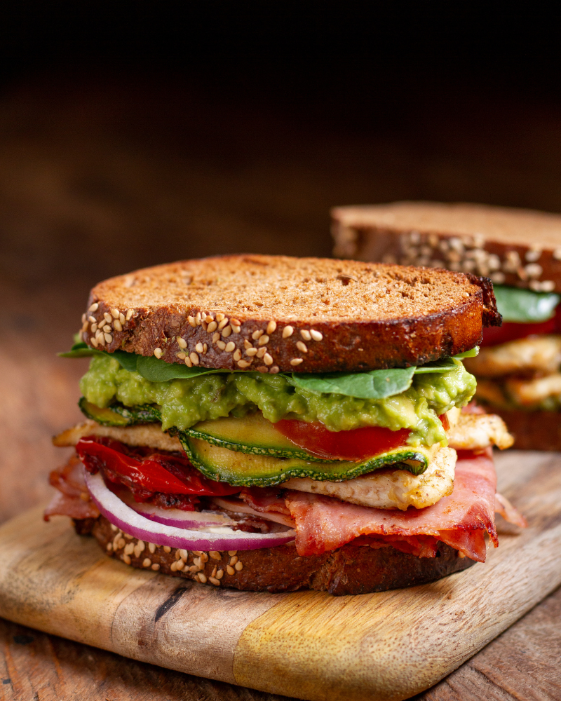 A toasted sandwich packed with...